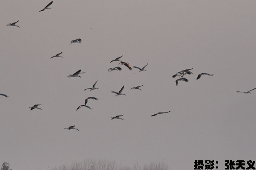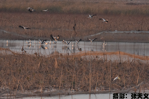 东方白鹳是国家一级保护动物,在民权属于过境鸟,十一月初,民权县林七水库疫源疫病监测站工作人员在民权湿地巡护时,发现百余只东方白鹳栖息在民权湿地。近年来,县林业局加大对民权湿地公园环境的保护免遭人为破坏,湿地环境得到有效改善,使更多的野生鸟在民权县湿地公园栖息、繁衍。